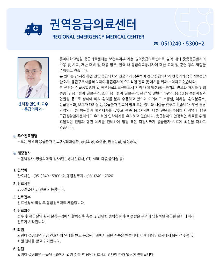 진료안내 전문진료센터 권역응급의료센터