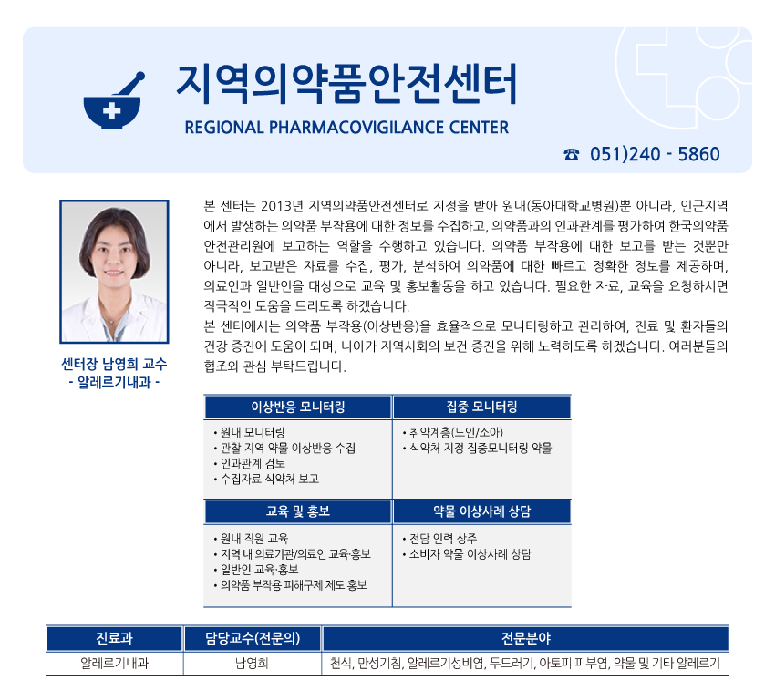 진료안내 전문진료센터 지역의약품안전센터