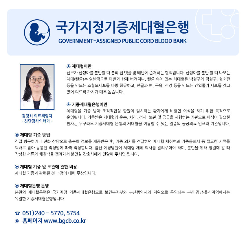 진료안내 전문진료센터 국가지정기증제대혈은행