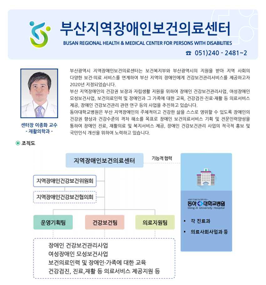 진료안내 전문진료센터 부산지역장애인보건의료센터