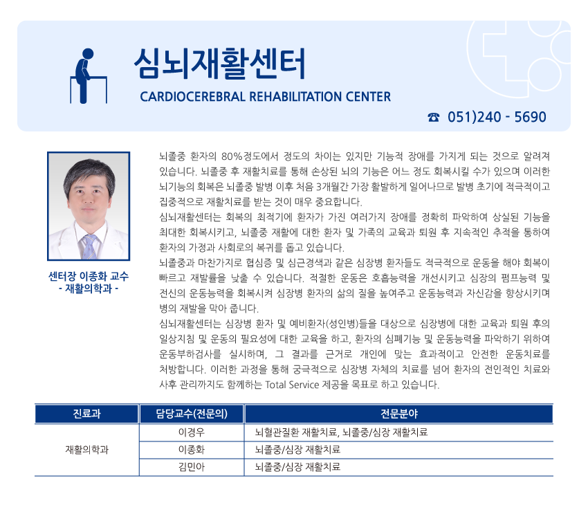 진료안내 전문진료센터 심뇌재활센터