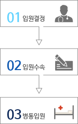 외래(또는 응급실) 진료를 받으신 후 입원필요시 담당의사의 입원지시가 있습니다.