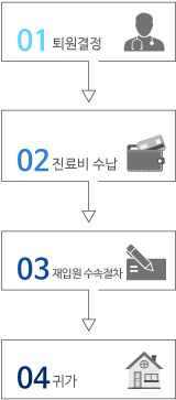재입원시 입원수속 창구에서 입원약정서 작성 및 예약 후 귀가합니다.