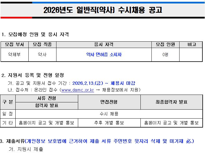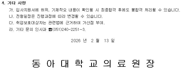 이전 2026년 동아대학교의료원 병리실 정규직 임상병리사 공개채용 최종 합격자 발표